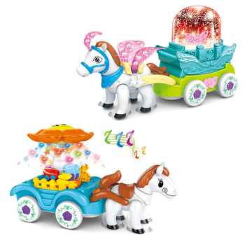 Cute Cartoon Electric Carriage Toy for Kids Girl Running Horse with Lighting Music & Drifting Snow Soothing Plastic Baby Toy